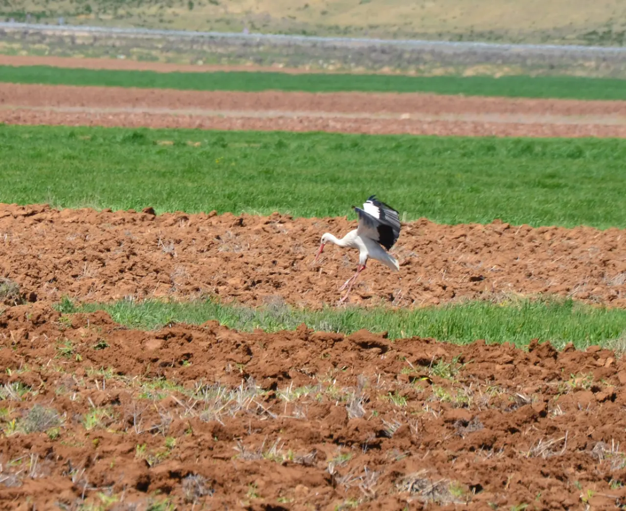 İlkbaharın gelmesiyle birlikte Aksaray’a göç eden leylekler beslenmek için tarlaları süren traktörün peşinden ayrılmıyor. Ağaçören ilçesinde leylekler, pullukların açığa çıkardığı solucan ve böceklerle beslenerek karnını doyuruyor. Tarlasında gezen leylekleri gördüğü için mutlu olan Üçler Altınkaya, “Leylekleri ağırlamaktan mutluyuz. Ben tarlayı sürerken onlarda pullukların açığa çıkardığı solucan ve böceklerle besleniyorlar.