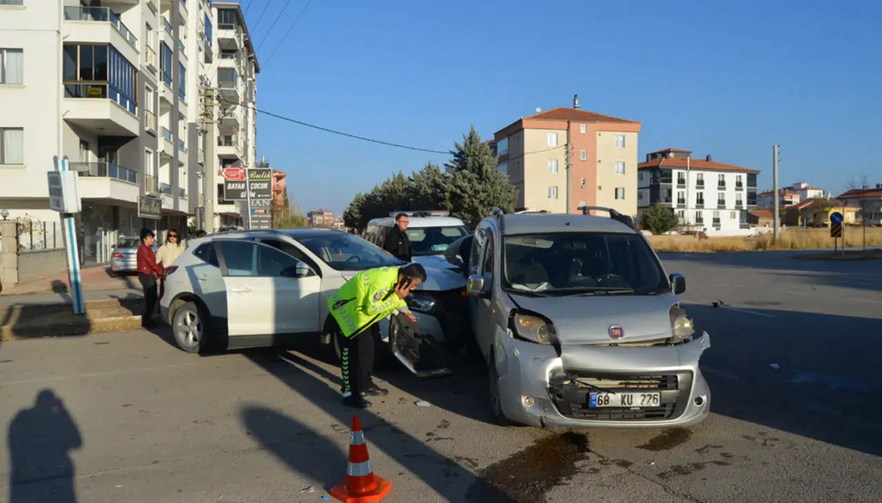 Aksaray’da üç aracın karıştığı zincirleme kazada bir kişi yaralandı. Kaza, Hasas Mahallesi’nde meydana geldi. İki hafif ticari araç ile bir otomobil kavşakta çarpıştı. Kazada hafif ticari araçta bulunan bir kadın yaralandı. İhbar üzerine olay yerine polis ve sağlık ekipleri sevk edildi. Yaralı ambulansla Aksaray Eğitim ve Araştırma Hastanesi’ne kaldırıldı. Polis ekipleri kazayla ilgili inceleme başlattı. Foto-Haber: Erkan ALTUNTAŞ