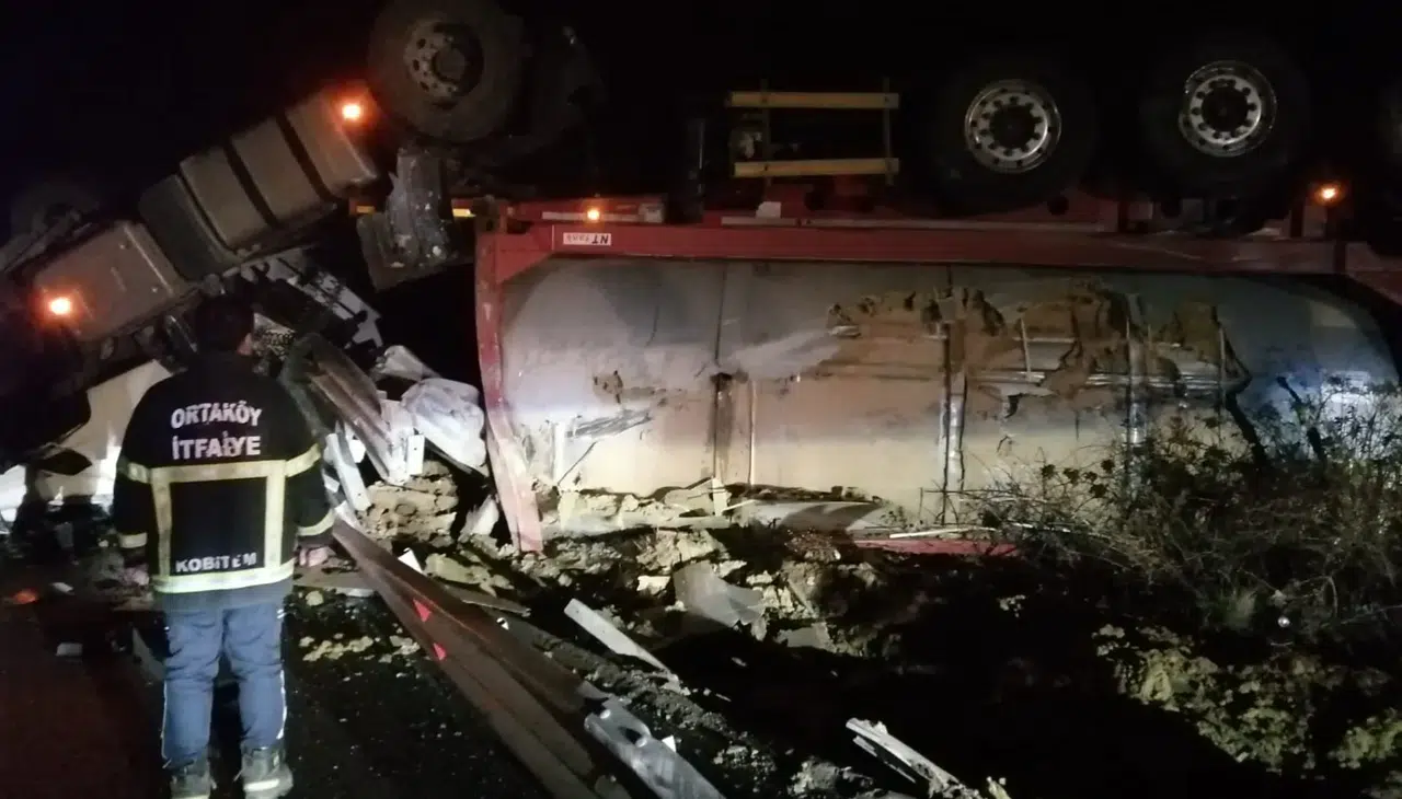 Niğde–Ankara otoyolunda kimyasal madde yüklü bir tankerin bariyerlere çarpıp devrilmesi sonucu sürücü Sinan K. (54) yaralandı. Kaza, Niğde–Ankara otoyolunun Ortaköy ilçesi yakınlarında meydana geldi. Gebze’den Adana’ya kimyasal madde taşıyan Sinan K. yönetimindeki 41 plakalı tanker, sürücüsünün kontrolünden çıkarak bariyerlere çarpıp devrildi. Kazada kabin içerisinde sıkışan sürücü yaralandı. Yoldan geçen sürücülerin ihbarı üzerine olay yerine sağlık, jandarma ve itfaiye ekipleri sevk edildi. Ekiplerin yaklaşık 20 dakikalık çalışması sonucu sıkıştığı yerden kurtarılan sürücü, ambulansla Aksaray Eğitim ve Araştırma Hastanesine kaldırıldı. Tedavi altına alınan Sinan K.’nın sağlık durumunun iyi olduğu öğrenildi. Jandarma ekipleri kazayla ilgili soruşturma başlattı. Haber: Erkan ALTUNTAŞ