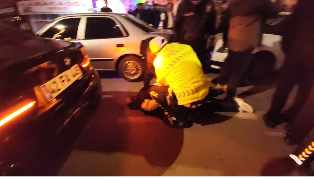 Serkan S. yönetimindeki 68 plakalı hafif ticari araç, Ümmet E (33) yöntemindeki 40 plakalı otomobile arkadan çarptı. Serkan S. araçtan inip olay yerinden kaçtı. Çevredekiler durumu polis ekiplerine bildirdi. Trafik polisleri kaza yerinde inceleme yaparken, Serkan S., ile yakınları Sait S. ve Rahmi S. kaza yerine geldi. Polis ekipleri şüphelilerden kimlik istedi. Kimlik vermeyen 3 kişi polise kimlik vermek istemeyerek direndi. Sait S., bu sırada kaza yerinde bulunan Trafik Tescil ve Denetleme Şube Müdürü Gürsoy Yalvaç’a tekme attı. Polis ekipleri biber gazı kullandığı 3 kişiyi etkisiz hale getirip gözaltına aldı. Sürücü Serkan S.’nin yapılan alkol kontrolünde 2.60 promil alkollü olduğu ortaya çıktı. Trafik Tescil ve Denetleme Şube Müdürü Gürsoy Yalvaç, Aksaray Eğitim ve Araştırma Hastanesinde tedavi edildi. Olayla ilgili soruşturma sürüyor.Foto-Haber :Erkan ALTUNTAŞ