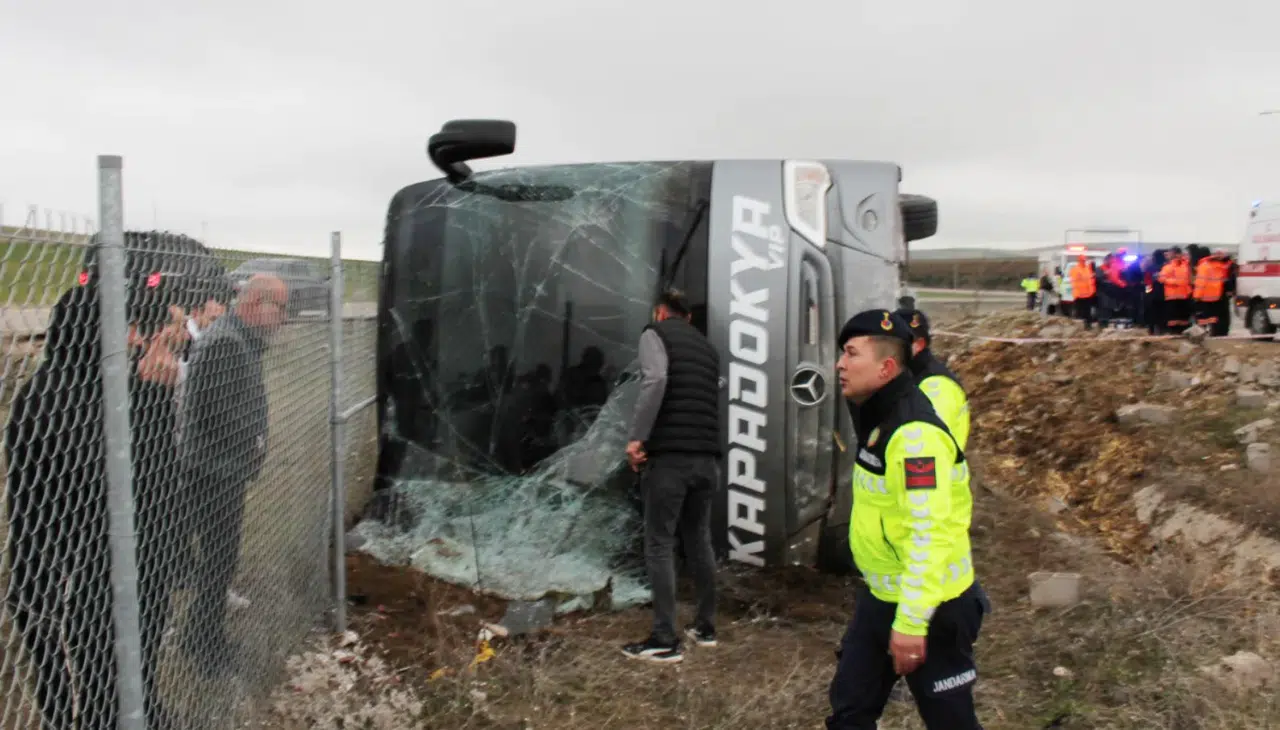 Aksaray’da tur otobüsünün şarampole devrildiği kazada 20 kişi yaralandı