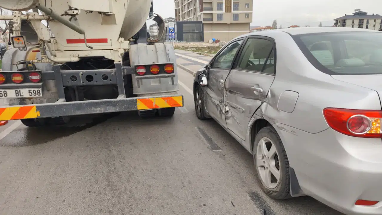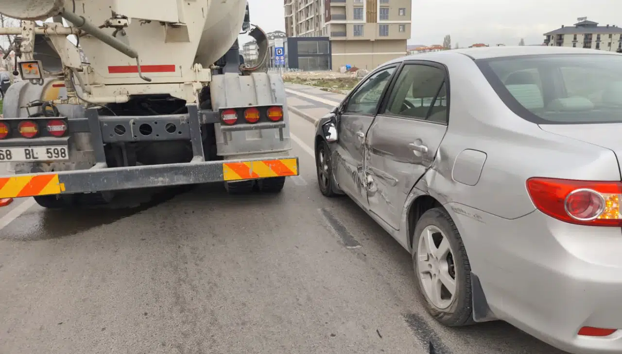 Aksaray’da beton mikseri ile otomobilin çarpıştığı kazada, arkadan gelen motosiklet sürücüsü devrilerek yaralandı.