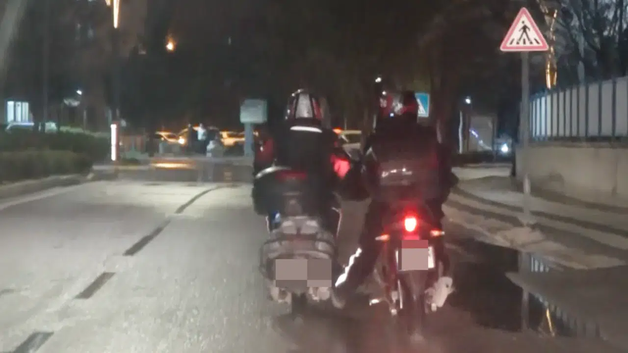 Motosikletli kuryenin, yanında giden bir başka motosikletli kuryenin motoruna ayağı ile basıp seyir etmesi yürekleri ağızlara getirdi. Olay Büyük Bölcek Mahallesinde bir motosikletli kurye, diğer motosikletli kuryeyi ayağı ile iterek götürdü. Trafiği hiçe sayan iki motosiklet sürücüsü uzun süre bu şekilde gitmeye devam etti. İki motosikletli kuryenin tehlikeli yolculuğu kameraya yansırken, yolculuk cadde boyu sürdü. Foto-Haber: Erkan ALTUNTAŞ