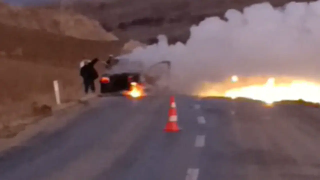 Aksaray’ın Ağaçören ilçesinde seyir halindeki bir otomobilde çıkan yangın, itfaiye ekiplerinin müdahalesiyle söndürüldü. O anlar cep telefonu kamerasına yansıdı. Olay, Hüsrev köyü yakınlarında meydana geldi. Seyir halindeki otomobilin sürücüsü, motor kısmından alevlerin yükseldiğini görünce aracını durdurarak yangın tüpüyle müdahale etti. Alevleri fark eden köylülerin ihbarı üzerine bölgeye jandarma ve itfaiye ekipleri sevk edildi. Ekiplerin müdahalesiyle yangın kısa sürede söndürüldü. Araç kullanılamaz hale geldi. Foto–Haber: Erkan ALTUNTAŞ