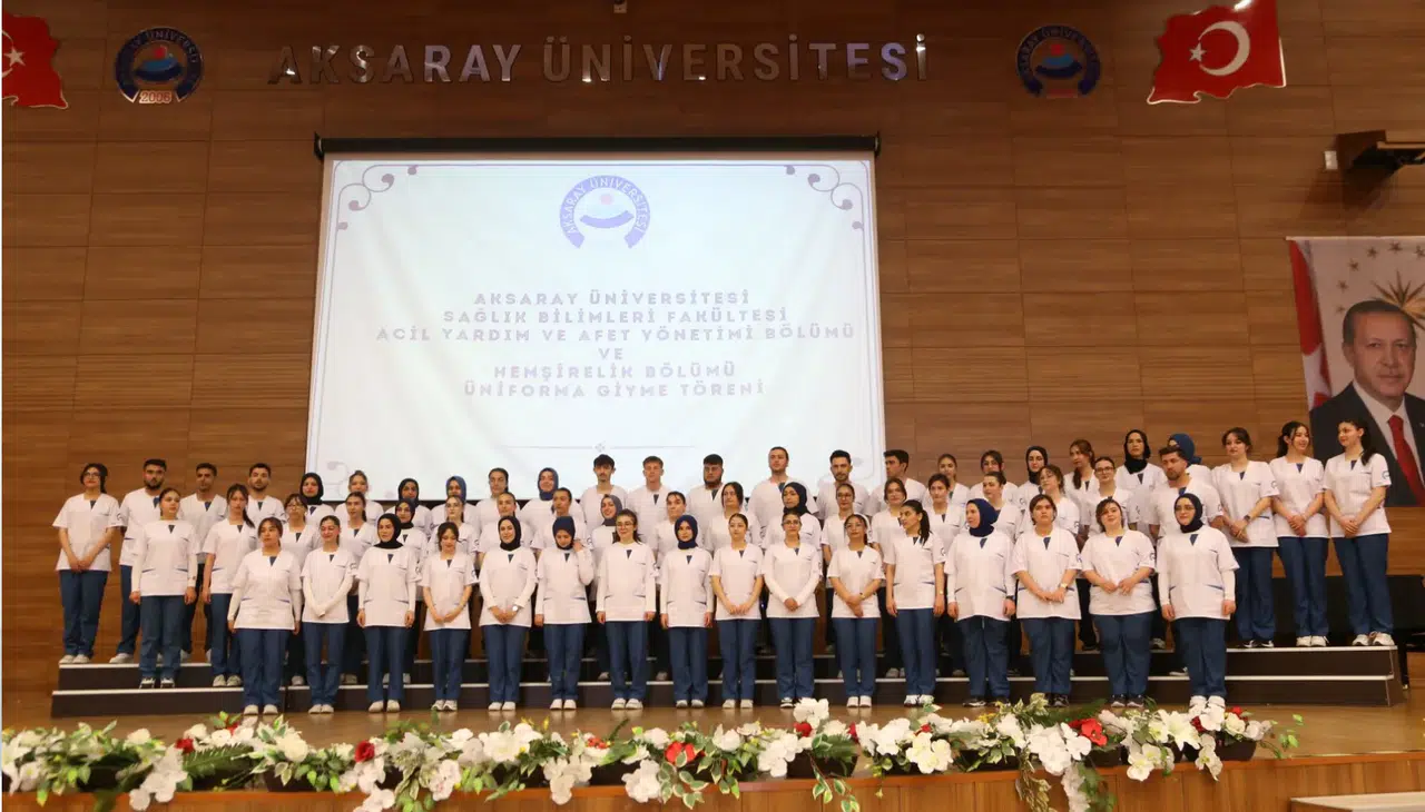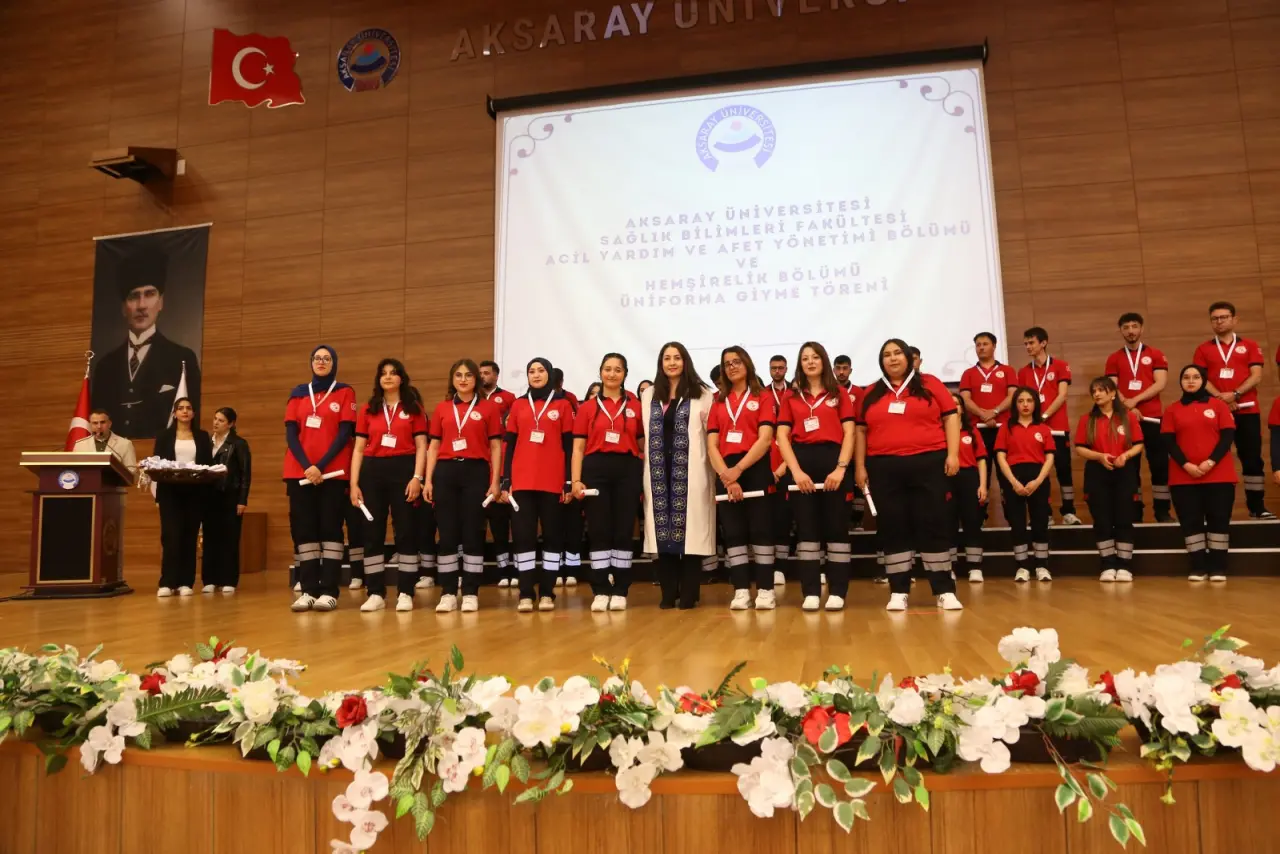 Aksaray Üniversitesi (ASÜ) Sağlık Bilimleri Fakültesi Acil Yardım ve Afet Yönetimi Bölümü ile Hemşirelik Bölümü öğrencileri, düzenlenen törenle üniformalarını giydi. ASÜ Konferans Salonunda düzenlenen üniforma giyme törenine ASÜ Rektör Yardımcısı Prof. Dr. Ömer Köse, Aksaray AFAD İl Müdürü Adil Arslan, Sağlık Bilimleri Fakültesi Dekanı Prof. Dr. Didem Balun Kayan, akademisyenler, öğrenciler ve aileleri katıldı.