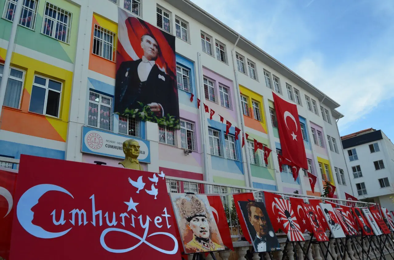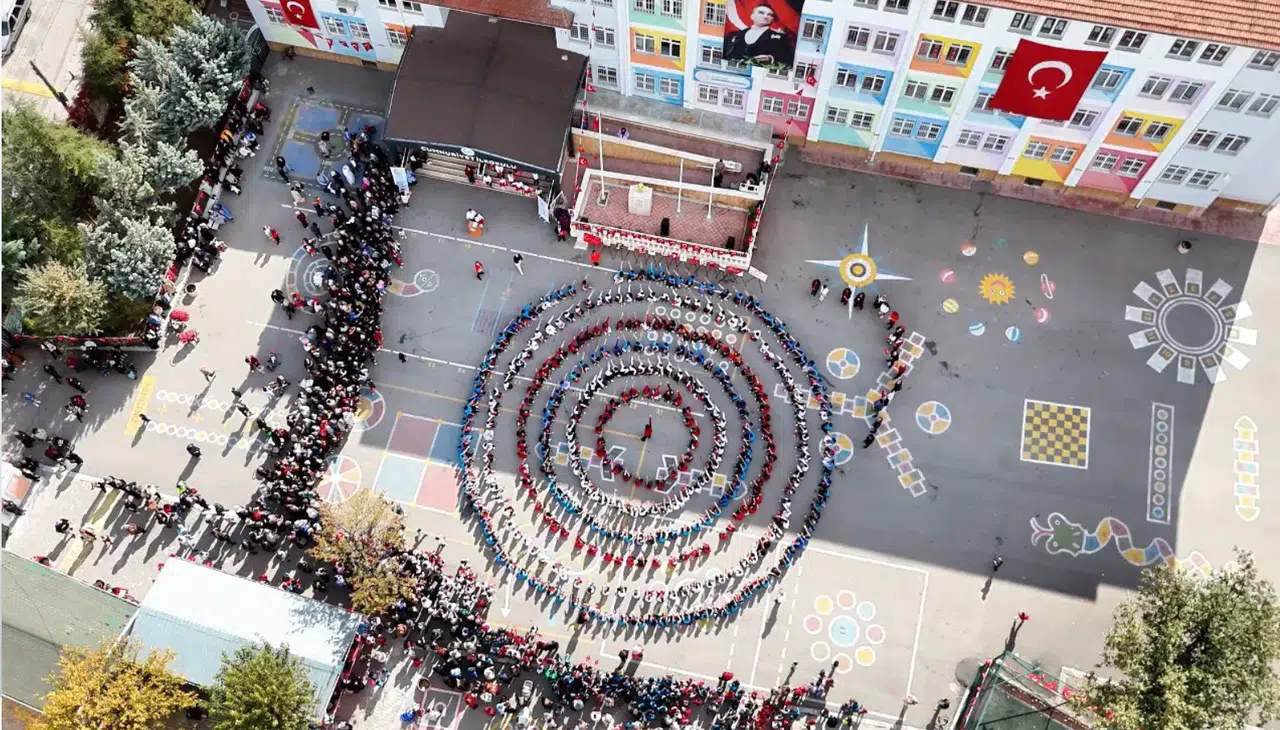 Aksaray’da Cumhuriyet İlkokulu 29 Ekim Cumhuriyet Bayramı'na özel koreografi hazırladı. 550 öğrenci ellerinde bayraklarla bayramı kutladı. Cumhuriyet İlkokulu'nda okuyan 550 öğrenci ellerinde Türk bayrakları ile '29 Ekim Cumhuriyet Bayramı'na özel koreografi gösterisi sunuldu. Topluluklardan, okullar arası halkalar yaparak, öğretmenleriyle birlikte coşkuyla 29 Ekim Cumhuriyet Bayramı'nı kutladı. Bu görsel şöleni havadan drone ile görüntülendi. Öğrencileri veliler yalnız bırakmadı.Foto-Haber :Erkan ALTUNTAŞ