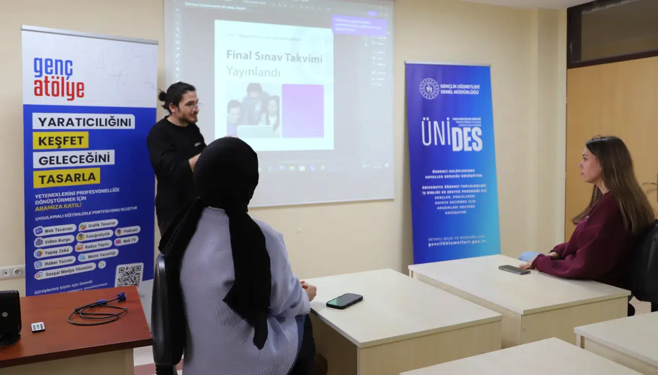 Kahraman, atölye kapsamında yaptığı değerlendirmede, “Dijital çağda görsel iletişim yalnızca estetik bir unsur değil, aynı zamanda stratejik bir iletişim aracıdır. Doğru kurgulanmış bir tasarım, mesajın hedef kitleye daha hızlı ve etkili ulaşmasını sağlar. Tasarım süreçlerinde yaratıcı düşünmenin yanı sıra hedef kitle analizi ve içerik stratejisi de büyük önem taşır” ifadelerini kullandı. Gerçek proje örnekleri üzerinden yapılan anlatım, öğrencilerin sektörel bakış açısı kazanmalarına katkı sağladı. Programın sonunda projeyi başarıyla tamamlayan Genç PR üyeleri için küçük bir kutlama organize edildi. Samimi bir atmosferde gerçekleşen etkinlikte, ekip çalışmasının ve üretim sürecindeki emeğin değeri ön plana çıkarıldı. Katılımcılar hem akademik hem de mesleki anlamda verimli bir günü geride bırakmanın mutluluğunu yaşadı. Foto-Haber: Şirin SAVAŞ