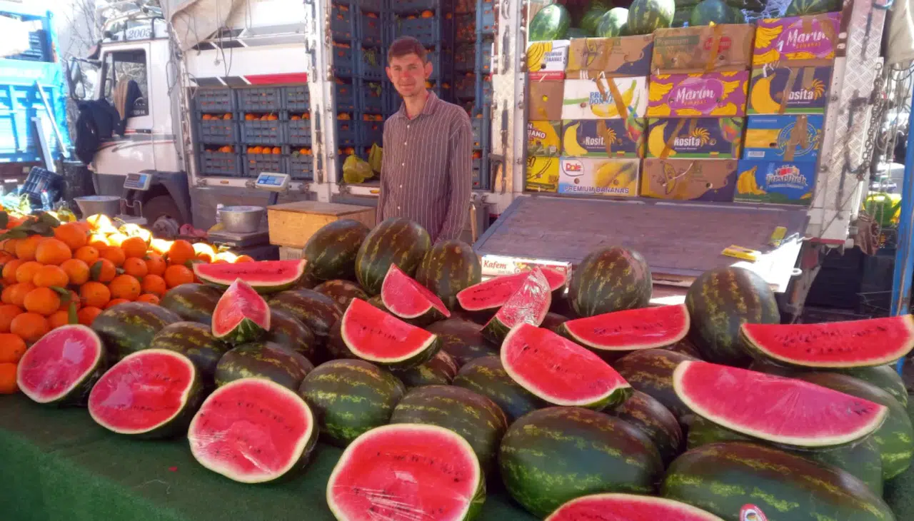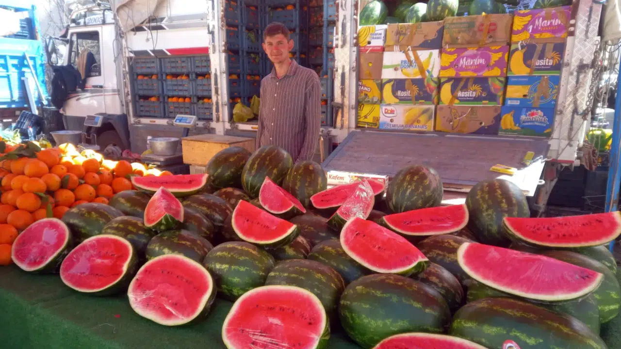 Aksaray’da İran’dan gelen karpuzlar pazar tezgâhlarında yerini almaya başladı. Yaz mevsiminin vazgeçilmez lezzetlerinden biri olan karpuzun kilosu, boyutuna göre 45 liradan başlayıp 60 liraya kadar çıkıyor. Cumartesi pazarında satışa sunulan karpuzlar özellikle vatandaşların ilgisini çekerken, pazarcı esnafı ürünü dilimleyerek de satışa sunuyor. Ortalama bir buçuk kilogram gelen bir dilim karpuzun fiyatı ise yaklaşık 90 lira. Pazar esnafı Durmuş Tan, “Karpuzun kilosu 60 lira. Sezonun ilk karpuzları İran’dan geldi. İlgi oldukça iyi. Adana karpuzu ise yaklaşık 40-45 gün sonra gelecek. Vatandaşlarımız karpuzu özlemiş. Bu nedenle dilimleyerek satış yapıyoruz.” dedi. Foto-Haber: Erkan ALTUNTAŞ