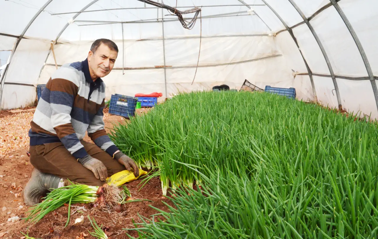 Aksaray’ın Laleli Mahallesi’nde 15 yıl önce küçük bir sera kurarak sebze üretimine başlayan Hasan Hüseyin Ulu, geçen süre içinde işlerini büyüterek 5 bin metrekarelik modern bir seraya ulaştı. Ulu, bu serada yılda 3 kez hasat yapıyor. 35 yıldır tarımla uğraşan çiftçi Hasan Hüseyin Ulu, “15 yıl önce 200 metrekare ile başladığım seracılık işini zamanla geliştirerek bugün 5 bin metrekareye çıkardım. Üretim sezonlarında yaklaşık 7–8 kadın çalışanımıza da istihdam sağlıyoruz. Nisan ayı başında salatalık, domates, biber ve patlıcan ekimine başlıyoruz. Haziran ayında hasat başlar ve kasım ayına kadar devam eder. Bu ürünler bittikten sonra kış dönemini geçirmek için dönüşümlü olarak ıspanak ve kuru soğan ekiyoruz. Yılın ilk ürününün hasadını yapmanın mutluluğunu yaşıyoruz” dedi. Bu yıl yeşil soğana talebin oldukça yüksek olduğunu belirten Ulu şöyle devam etti: “Aksaray’da soba ile ısıtma yapmadan, soğuğa dayanıklı yeşil soğan ve ıspanak üretiyoruz. Seramız gündüzleri yalnızca güneş ışığıyla ısınıyor, geceleri ise soba yakarak ısıyı dengede tutuyoruz. Kış aylarında soğanın yetişme süresi 45–50 gün arasında değişiyor. Seralarımızda 10 gün ara ile ekim yapıyoruz; böylece sürekli taze soğan ve ıspanak elde ediyoruz. Ürünlerimizi şehirdeki pazar ve manavlara gönderiyoruz. Antalya ve Mersin’den gelen yeşil soğan kilo ile satıldığı için fiyatı yüksek oluyor; onlar bağ olarak üretmiyor. Biz ise bağ şeklinde satış yapıyoruz ve bir bağ soğan bir ailenin ihtiyacını rahatlıkla karşılıyor.”