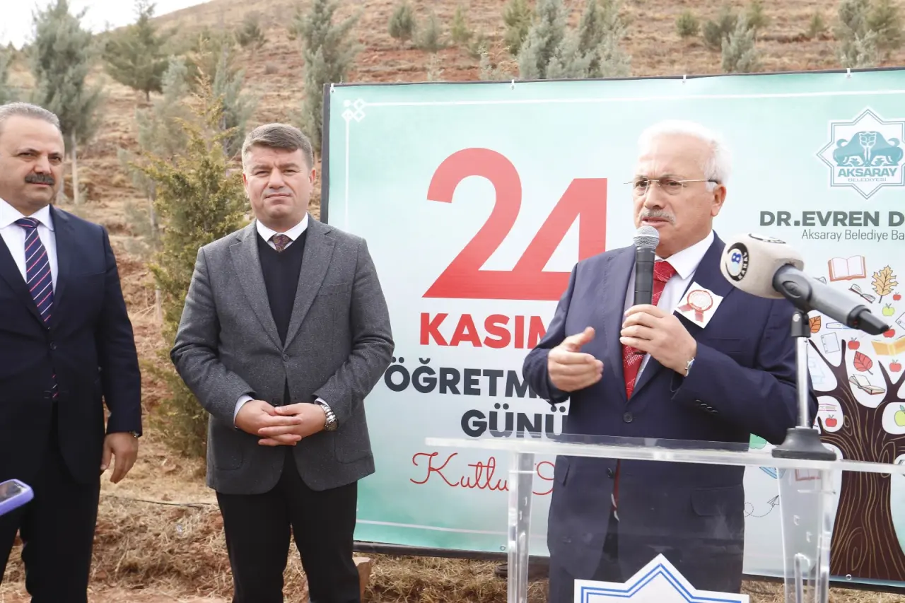 Aksaray Belediyesi tarafından 24 Kasım Öğretmenler Günü kapsamında Kireçlik Mevkii’nde oluşturulan Hatıra Ormanı’na bu yıl 5 bin fidan daha dikildi. Etkinliğe Vali Mehmet Ali Kumbuzoğlu, Aksaray Belediye Başkanı Dr. Evren Dinçer, ASÜ Rektörü Prof. Dr. Alpay Arıbaş, AK Parti Merkez İlçe Başkanı Muammer Gür, belediye meclis üyeleri, sivil toplum kuruluşu temsilcileri, öğretmenler, öğrenciler ve çok sayıda davetli katıldı