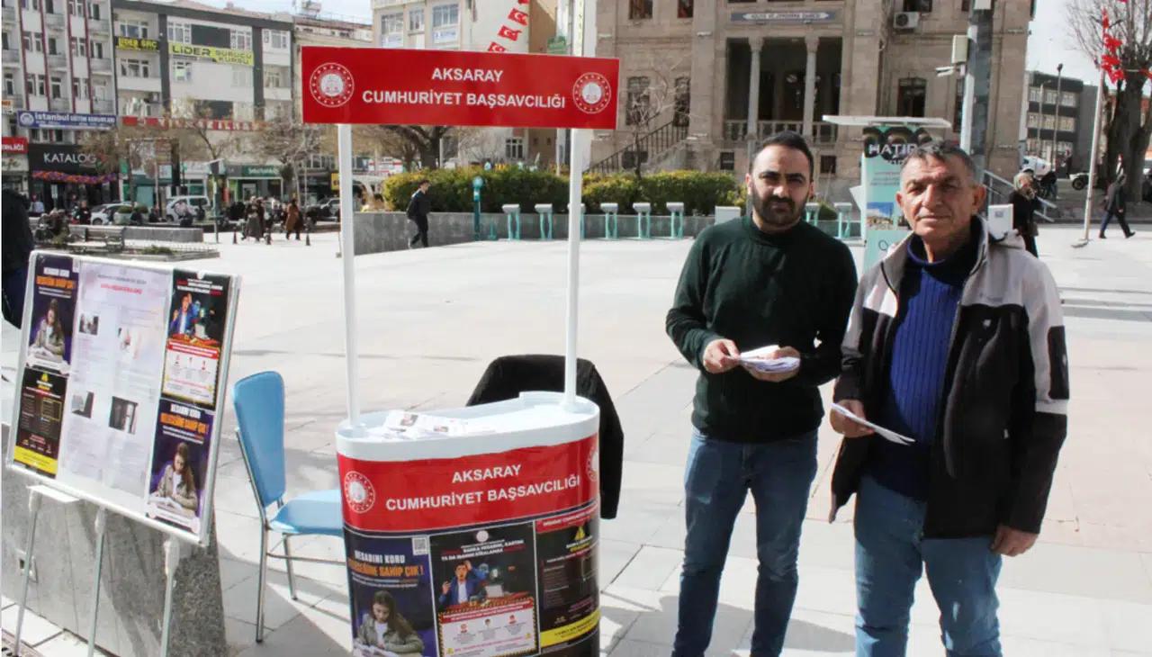 Aksaray’da, çocuklar adına açılan banka hesaplarının dolandırıcılıkta kullanılmasını önlemek amacıyla, 15 Temmuz Milli İrade Meydanı’nda bilgilendirme stantları kuruldu. Aksaray Cumhuriyet Başsavcılığı, bilişim suçları ve nitelikli dolandırıcılıkla mücadele kapsamında bilgilendirici ve önleyici çalışmalar başlattı. Son dönemde artış gösteren dolandırıcılık olaylarında, çocuklar adına açılan banka hesapları ve IBAN’ların kötü niyetli kişilerce kullanıldığı tespit edilince harekete geçen Cumhuriyet Başsavcılığı, toplumsal farkındalığı artırmak amacıyla bilgilendirme stantları kurdurdu. Stantlarda vatandaşlara el broşürleri dağıtılarak konuyla ilgili bilgi verildi. Ayrıca ekipler, telefon dolandırıcılığına karşı vatandaşları tek tek uyardı. Foto-Haber: Erkan ALTUNTAŞ
