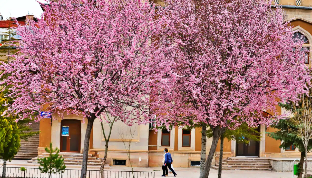 Baharın gelmesiyle birlikte ‘Japon kiraz ağacı’ olarak adlandırılan sakura ağaçları çiçek açtı. Eşsiz renkleri ve görselliği ile vatandaşların ilgisini çeken sakura çiçekleri, Aksaray İl Müftülüğü Cemaleddin Aksarayi Camii bahçesinde görsel bir şölen oluşturuyor. Botanikçiler, sakura ağaçlarının normal şartlarda Mart aylarında çiçek açtığını fakat bu sene hava şartlarından dolayı geç açtığını söylüyor.