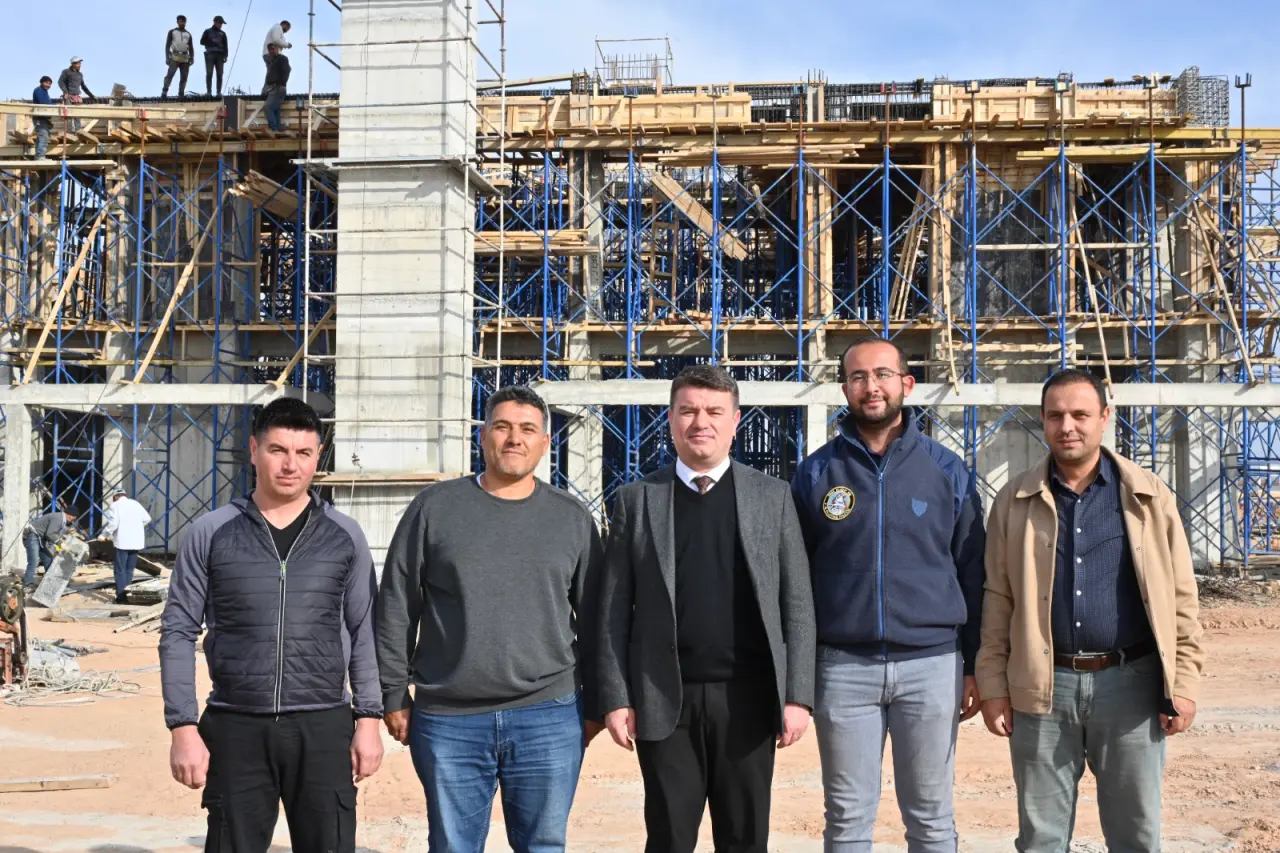 Belediye Başkanı Dr. Evren Dinçer, hizmete açılan Yeni Şehir Mezarlığı’nın içinde yapımı süren Şehir Mezarlığı Külliyesi projesinde devam eden çalışmaları yerinde inceleyerek yetkililerden bilgi aldı.
