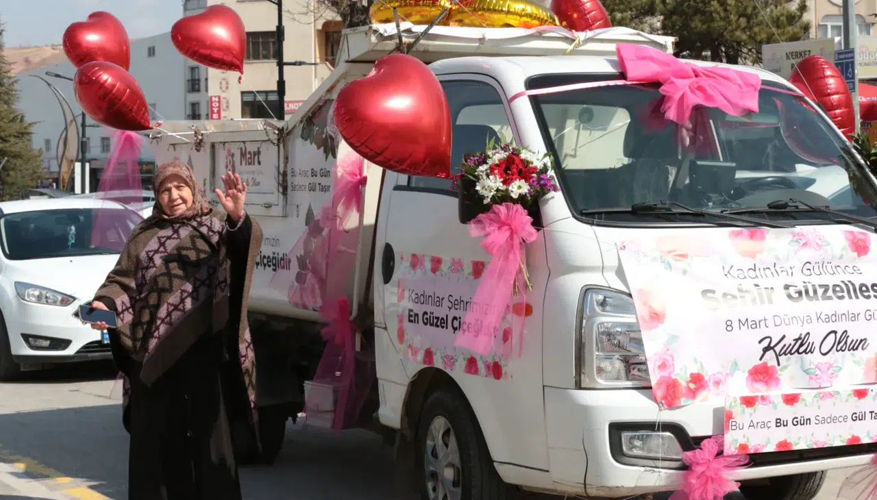 Aksaray Belediyesi, 8 Mart Dünya Kadınlar Günü dolayısıyla şehir merkezinde anlamlı ve renkli bir etkinliğe imza attı. Belediyeye ait bir hizmet aracı, kadınlar günü için özel olarak hazırlanarak balonlar, çiçekler ve kadınlara yönelik anlamlı sözlerle süslendi. Araç kasasına yerleştirilen yüzlerce gül ise gün boyunca kadınlara dağıtıldı. Aksaray Belediyesi Temizlik İşleri Müdürlüğü ve Basın Yayın Halkla İlişkiler Müdürlüğü ekiplerinin ortak organizasyonuyla gerçekleştirilen etkinlikte, çarşı merkezinde yavaş ilerleyen araçtan müzikler eşliğinde kadınlara sürpriz yapıldı. Üzerlerinde kalp figürlerinin bulunduğu özel tişörtler giyen belediye çalışanları, araçtan aldıkları gülleri çarşıda karşılaştıkları kadınlara tek tek takdim ederek 8 Mart Dünya Kadınlar Günü’nü kutladı. Kadınlara verilen güllerin üzerinde ise Aksaray Belediye Başkanı Dr. Evren Dinçer’in kadınların gününü kutlayan notları yer aldı.