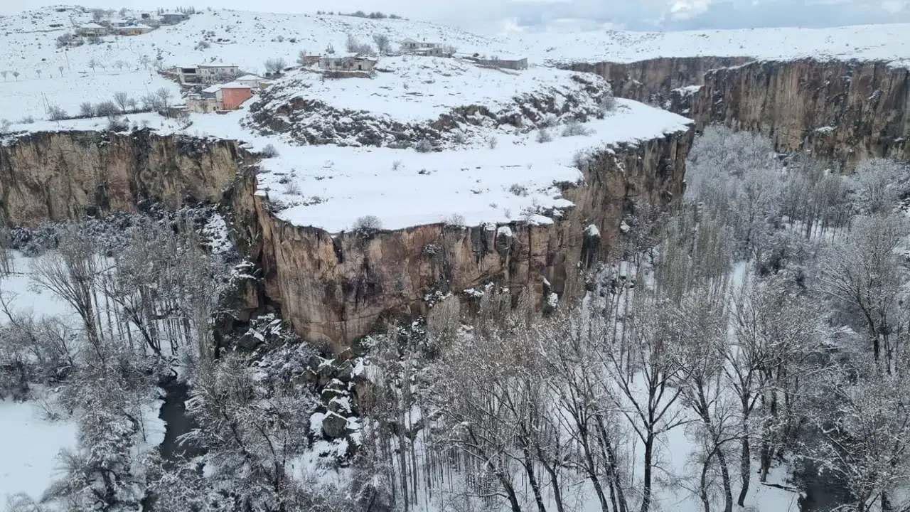 Türkiye’nin en çok ziyaret edilen 10 ören yeri arasında yer alan, tarihi ve doğal güzelliklerin buluştuğu Ihlara Vadisi, kar yağışıyla adeta beyaza büründü.