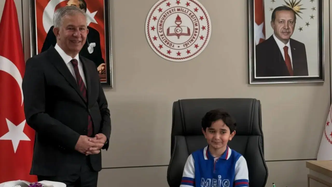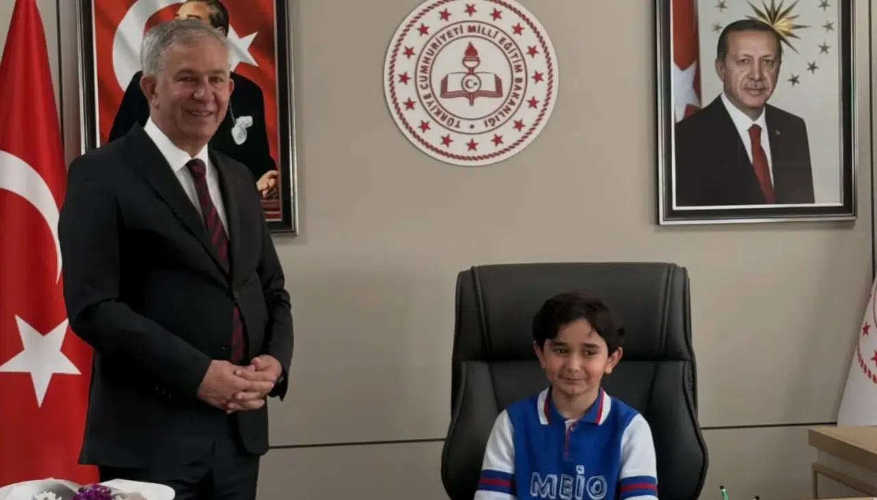 23 Nisan Ulusal Egemenlik ve Çocuk Bayramı kapsamında anlamlı bir devir teslim gerçekleştirildi. İl Millî Eğitim Müdürü Metin Alpaslan, makam koltuğunu temsili olarak Millî Egemenlik İlkokulu öğrencileri Elif Özan ve Aras Öztürk’e bıraktı. Günün anlam ve önemine uygun olarak gerçekleştirilen bu özel buluşmada minik öğrenciler, yalnızca koltuğu devralmakla kalmadı; aynı zamanda sorumluluğun da farkında olduklarını gösterdi. Elif Özan ve Aras Öztürk, İl Millî Eğitim Müdürlüğü Özel Kalem birimini arayarak eğitim süreçlerine dair talimatlarını iletti.