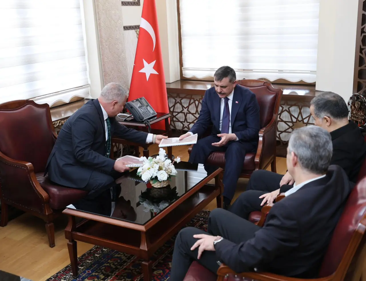 İçişleri Bakanı Mustafa Çifçi, çeşitli temas ve incelemelerde bulunmak üzere Aksaray’a geldi. Programı kapsamında ilk olarak Aksaray Valiliği’ni ziyaret eden Bakan Çifçi, Vali Murat Duru’dan kentte yürütülen çalışmalar hakkında bilgi aldı. Şehirdeki asayiş durumu ve güvenlik tedbirleri üzerine değerlendirmelerde bulunan Bakan Çifçi, kamu hizmetlerinin sahada etkin ve kesintisiz şekilde yürütülmesinin önemine dikkat çekerek; vatandaş odaklı hizmet anlayışıyla hızlı, koordineli ve çözüm üreten bir yönetim yaklaşımının sürdürüleceğini ifade etti.