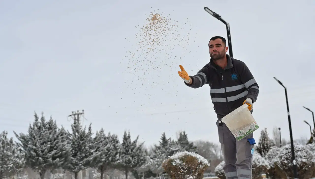 Aksaray’da kar ile birlikte soğuk havanın etkisini artırdığı günlerde, doğada yaşamını sürdüren canlıların beslenme koşulları zorlaştı. Hava sıcaklıklarının düşmesiyle birlikte, kuşlar, özellikle güvercinler, doğal besin kaynaklarına ulaşmakta güçlük yaşamaya başladı. Bu kapsamda şehir genelinde parklar, yeşil alanlar ve kuşların yoğun olarak bulunduğu noktalarda yemleme çalışmaları gerçekleştirildi. Karla kaplanan ve soğuk hava nedeniyle besin bulmanın zorlaştığı alanlarda yapılan bu çalışmalarla, doğadaki kuşların kış şartlarını daha kolay atlatmasına katkı sağlanması hedeflendi. Yapılan uygulamalarda, kuşların rahatlıkla ulaşabileceği alanlara uygun yemler bırakıldı. Soğuk havanın etkili olduğu dönemlerde, özellikle güvercinlerin şehir yaşamı içerisinde besin bulma konusunda daha fazla zorlandığı gözlemlenirken, gerçekleştirilen yemleme çalışmalarıyla bu durumun olumsuz etkilerinin azaltılması amaçlandı. Öte yandan, bu tür uygulamaların kış mevsimi boyunca belirli aralıklarla sürdürüldüğü ifade edildi. Soğuk hava şartlarının devam ettiği süreçte, doğadaki kuşların korunması ve yaşam koşullarının desteklenmesi adına benzer çalışmaların ihtiyaç duyulan alanlarda devam edeceği belirtildi. Vatandaşların da bu konuda duyarlılık gösterebileceğine dikkat çekilirken, apartman önleri, bahçeler ve uygun açık alanlara bırakılacak az miktarda yemlerin, kuşların soğuk kış günlerini daha kolay geçirmesine katkı sunacağı ifade edildi. Bireysel olarak yapılacak küçük desteklerin, şehir genelinde olumlu bir farkındalık oluşturabileceği vurgulandı. Kar ile birlikte soğuk havanın etkisini sürdürdüğü Aksaray’da, hem şehir yaşamının düzenli şekilde devam etmesi hem de doğadaki canlıların korunmasına yönelik çalışmaların, kış koşulları boyunca sürdürüleceği kaydedildi. (Haber Bülteni)