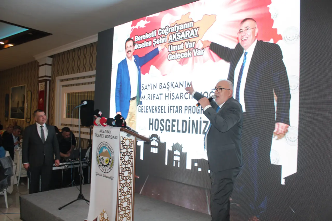Aksaray Ticaret Borsası tarafından iftar programı gerçekleştirildi. Programa Türkiye Odalar ve Borsalar Birliği (TOBB) Başkanı Rifat Hisarcıklıoğlu, Aksaray Valisi Murat Duru, Milletvekili Cengiz Aydoğdu, Aksaray Ticaret Borsası Başkanı Hamit Özkök ile çok sayıda davetli katıldı.