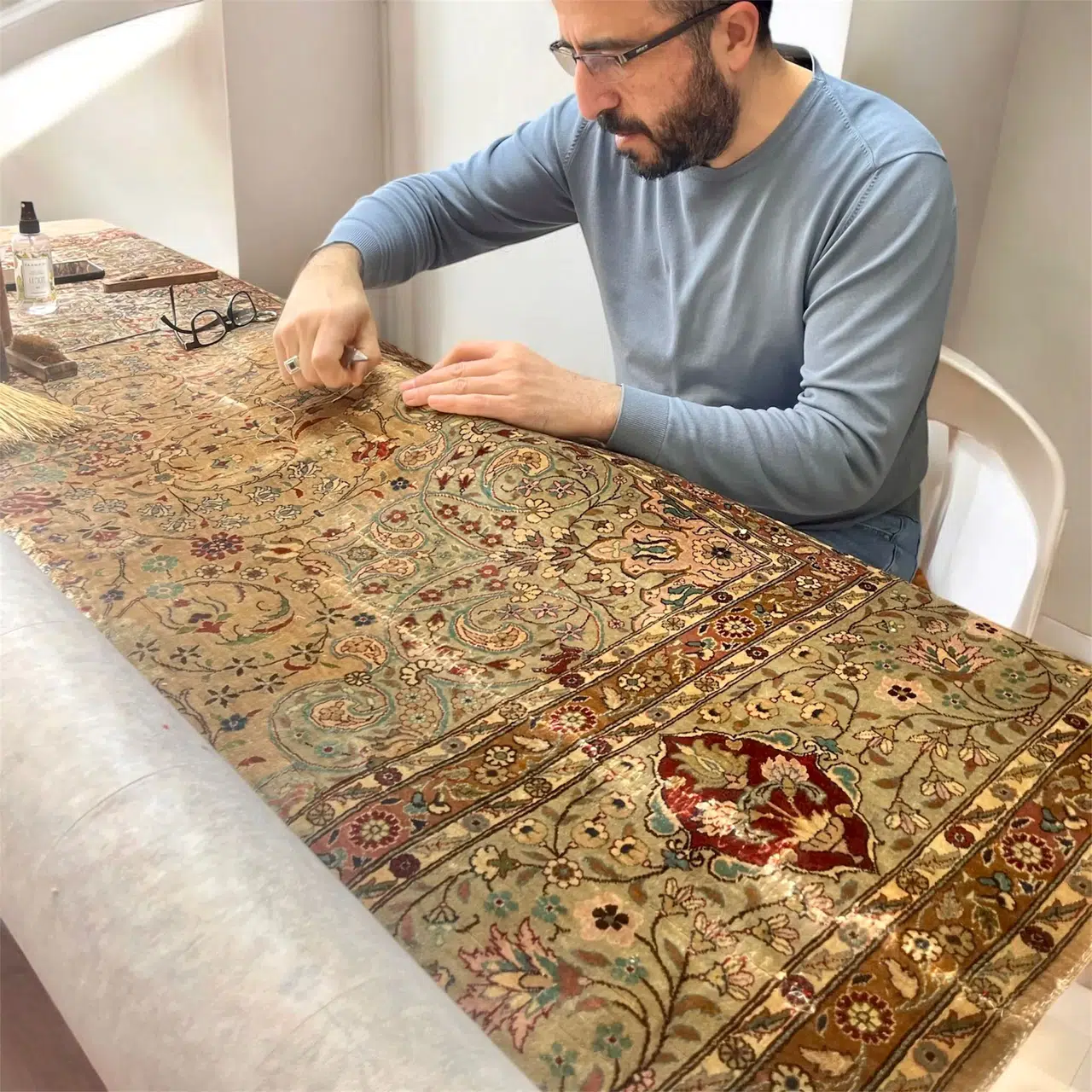İstanbul Fener Rum Patrikhanesi’nin 100 yıllık Hereke ipek halısı, Aksaray’da 80 günde tamir edilerek kilisenin duvarında özel yaptırılan çerçeve içinde sergilenmeye başlandı. Kültür Bakanlığı El Dokuma Halı ve Kilim Tamir Sanatçısı Ramazan Yumuşak, konuyla ilgili şu bilgileri verdi: “İstanbul Fener Rum Patrikhanesi Müdürü Apostol Bey, yaklaşık dört ay önce bizi aradı. Biz de gidip halıya baktık. Halı, 100 yıllık ve nadir bulunan, 4 metrekarelik ipek bir Hereke halısıydı. Halıyı 80 günde tamir ettik. Arka kısmına kumaş diktik, ardından özel bir çerçeve yaptırıldı. Halı şu anda, burada hazırlanan özel bir duvarda sergileniyor. Bu halının üst ve alt kısmında Osmanlıca yazılar vardı. Çevirmen bir arkadaşımıza halının fotoğrafını gönderdim. Yazıda ‘Kavaf oğlu Salim’ yazıyordu. Bu, halıyı dokutturan kişinin adı. Osmanlı’da ‘kavaf’, ayakkabı satan veya tamir eden kişilere denirmiş. Bu kişi, dönemin büyük bir esnafıymış ve bu halıyı kendisi için özel olarak dokutmuş. Halıda yırtıklar ve kırık bölgeler vardı. Hatta daha önce dikiş makinesiyle onarılmaya çalışılmış. İpek olduğu için çok çabuk kırılıyor. Ayrıca halı, kilisede yaklaşık 30 yıl boyunca rulo halinde saklanmış. Biz bu süreçte, eski halılardan bulduğumuz uygun iplerle, yörenin dokuma yapısına uygun şekilde tamir işlemlerini gerçekleştirdik. 80 gün boyunca bu halıyla adeta yatıp kalktık. Dikiş izlerini, kırılmış ve patlamış bölgeleri aslına uygun şekilde özenle tamir ettik. Son olarak halıyı özel ölçümle temizleyip tekrar İstanbul’a, Patrikhane Müdürü Apostol Bey’e teslim ettik. Kendisi de, halıya yeniden hayat verdiğimiz için bize teşekkür etti. Biz de, 100 yıllık bu Hereke ipek halısının önünde fotoğraf çektirince tüm yorgunluğumuzu unuttuk.” Haber: Erkan ALTUNTAŞ