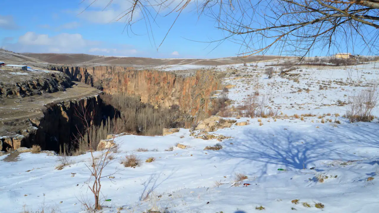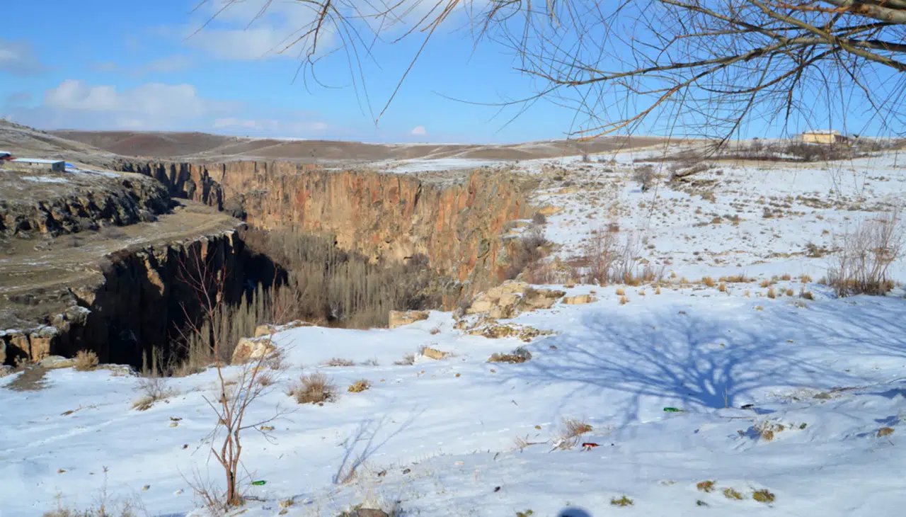 Aksaray’ın Ihlara Vadisi, karla beyaz örtüye bürünen doğal güzelliği ile yılın 12 ayı yerli ve yabancı ziyaretçilerini ağırlamayı sürdürüyor. Kış mevsiminde Ihlara Vadisi, Hasan Dağı, Narlı Göl, Kızıl Kilise ve Selime Katedrali ile kartpostallık görüntüler sunuyor. Kaya oyma kiliseleri, onlarca kilisesi ve zengin bitki örtüsüyle her mevsim ziyaretçilerini kendine hayran bırakan 14 kilometre uzunluğundaki Ihlara Vadisi’ne 394 basamaklı merdivenle iniliyor. Vadi, Aksaray’ın Güzelyurt ilçesinde başlıyor. Bu nedenle, özellikle Kapadokya bölgesini gezen yerli ve yabancı turistler, yılın ilk günlerinde doğa tutkunlarının uğrak yeri haline gelen Ihlara Vadisi’ni ziyaret ediyor.